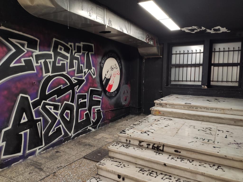 Παρατημένο λοιπόν το υπόγειο και όλα με μία εικόνα τάξης και καθαριότητας και τα γκράφιτι τα σωστά στα στέκια. Αφού μου ήρθε εμένα να βγάλω τον μαρκαδόρο να γράψω αλλά ήταν όλα μέσα σα το γάλα και κολωσα δεν έγραψα - άσε μην ερχόντουσαν τίποτα οπκε εκεί και με συλλάμβαναν.
